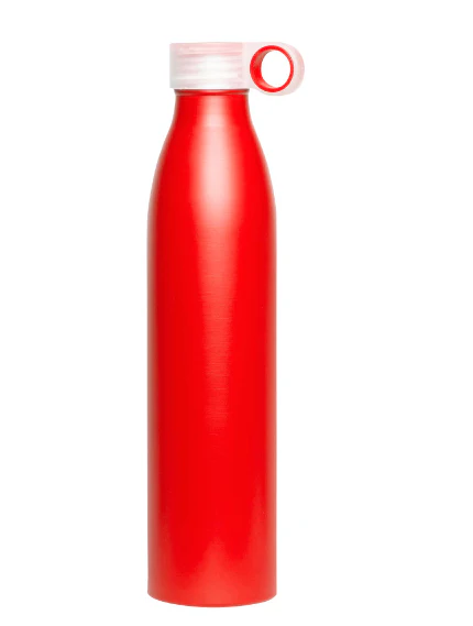 Cilindro de acero inoxidable, con tapa de plástico enroscable.